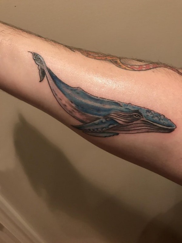 纹身鲸鱼 男生手臂上鲸鱼纹身图片