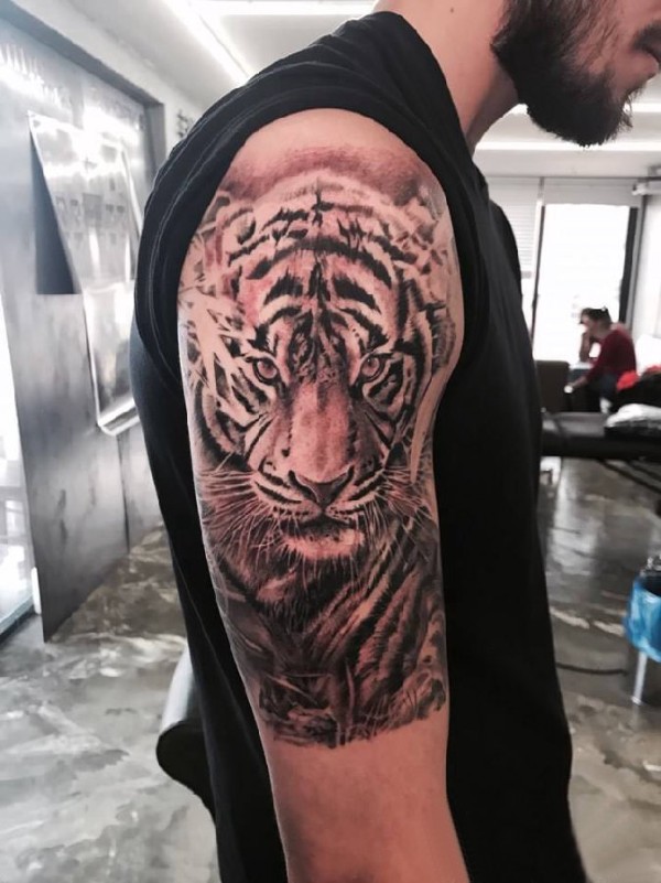 老虎图腾纹身 男生手臂上老虎图腾纹身图片