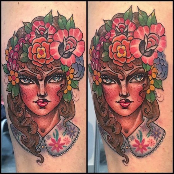 女生人物纹身图案 女生小腿上女生人物纹身图案