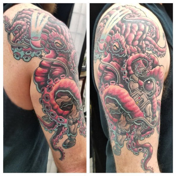 章鱼纹身图案 男生手臂上章鱼纹身图案
