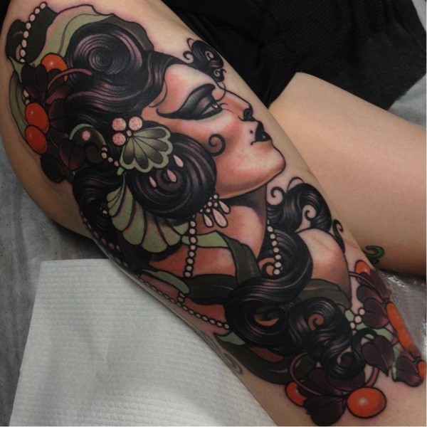 女生人物纹身图案 女生小腿上女生人物纹身图案