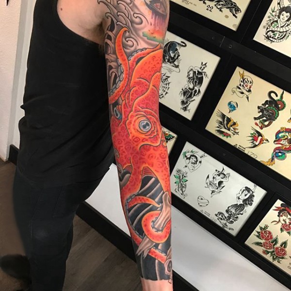章鱼纹身图案 男生手臂上章鱼纹身图案