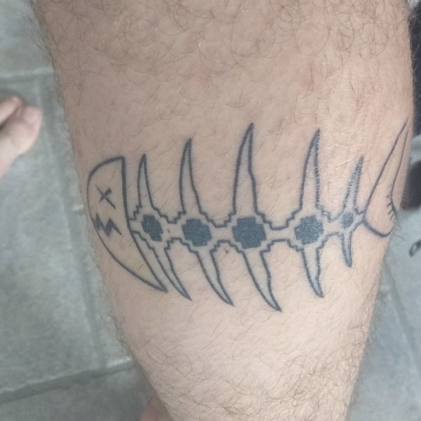 鱼骨纹身图案 男生小腿上鱼骨纹身图案