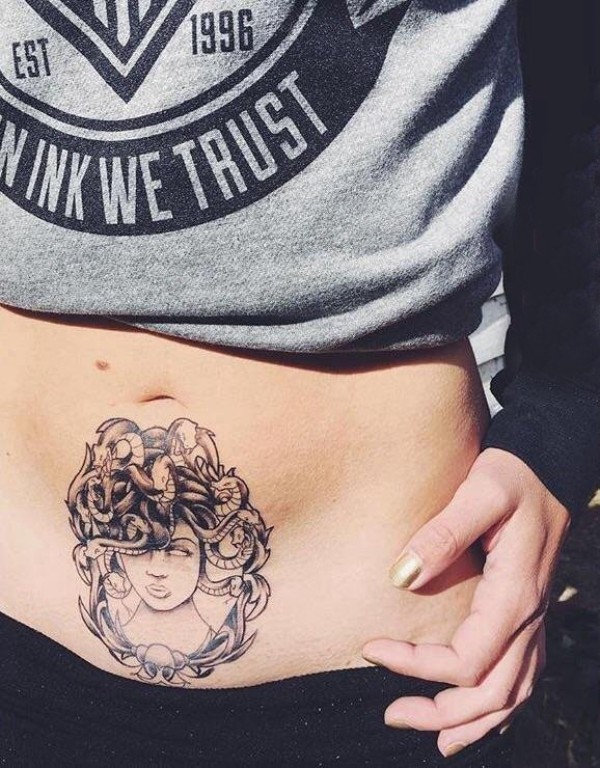 女生人物纹身图案 女生腹部女性人物纹身图案