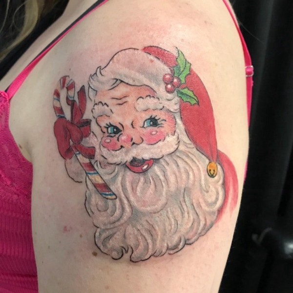 圣诞纹身 男生大臂上彩色的圣诞老人纹身图片