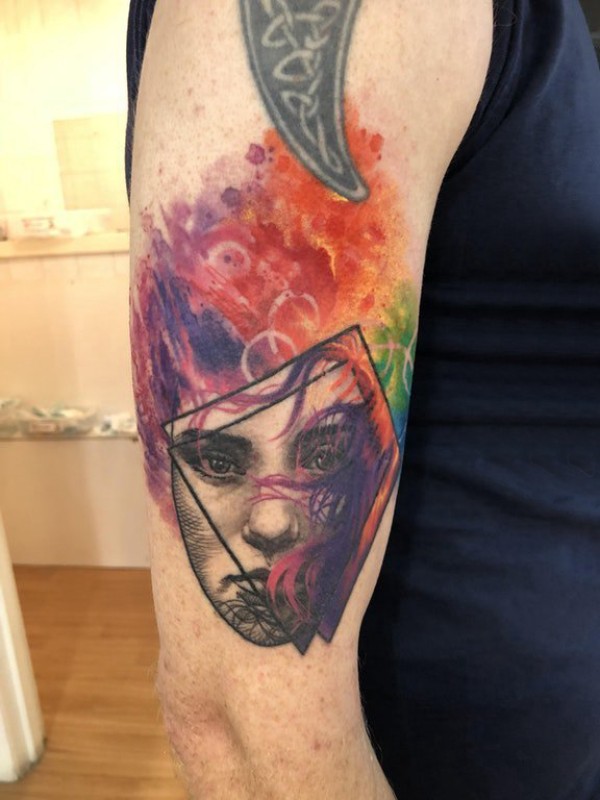 人物肖像纹身 男生手臂上几何和人物纹身图片