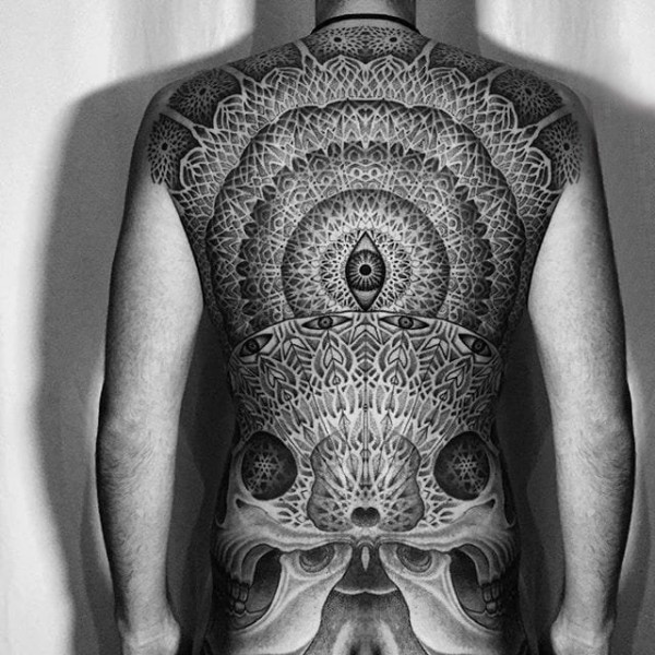 背部纹身图案 多款黑灰纹身点刺技巧背部纹身图案