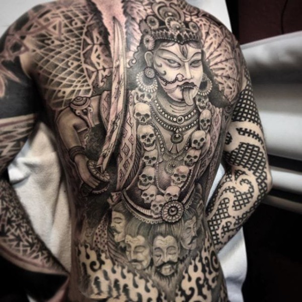 背部纹身图案 多款黑灰纹身点刺技巧背部纹身图案