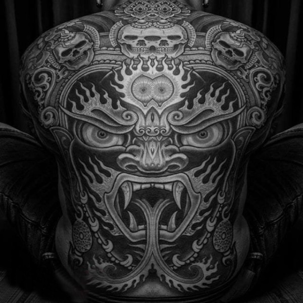 背部纹身图案 多款黑灰纹身点刺技巧背部纹身图案