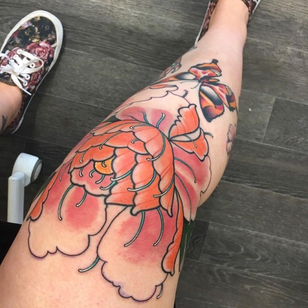 文艺花朵纹身 女生腿部文艺花朵纹身图片