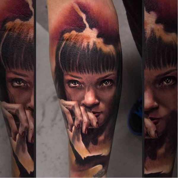 女生人物纹身图案 女生小腿上女生人物纹身图案