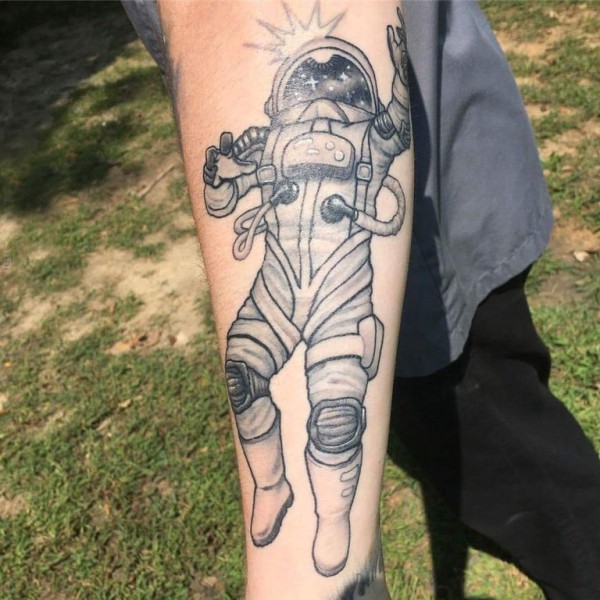 手臂纹身图片 女生手臂上黑色的宇航员纹身图片