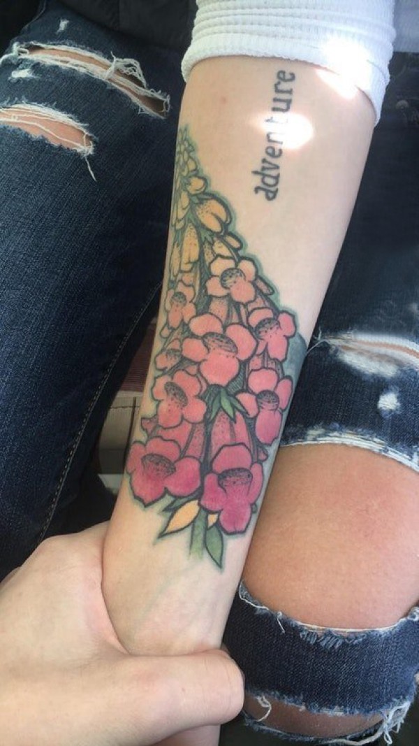 花卉纹身 女生手臂上彩色的花卉纹身图片