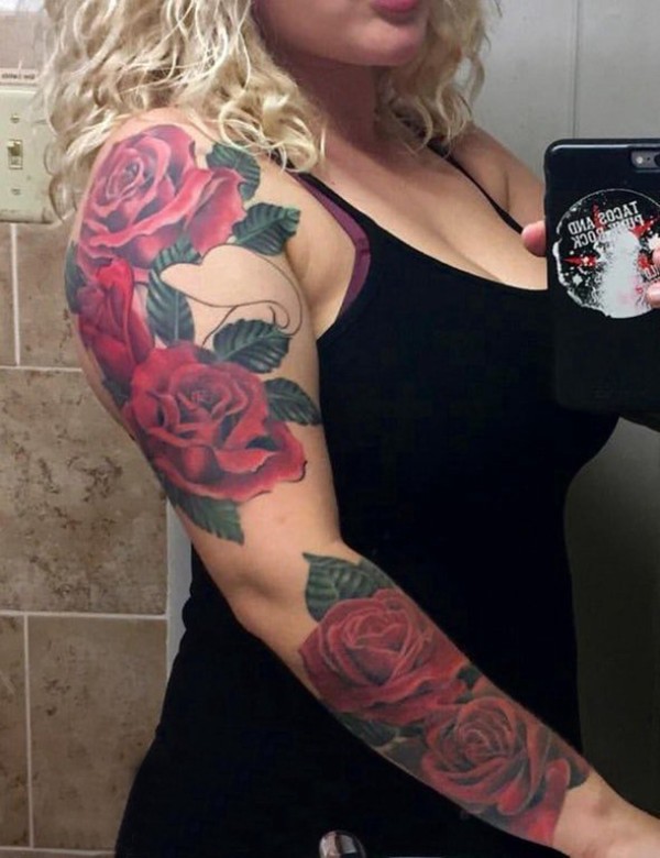 花朵纹身 女生手臂上彩色的玫瑰花臂纹身图片