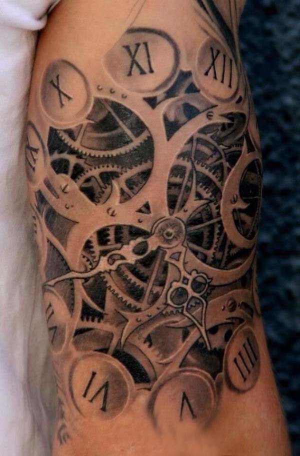 包臂齿轮纹身 男生手臂上创意的齿轮纹身图片