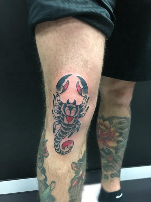 腿部纹身 男生腿部彩色的蝎子纹身图片