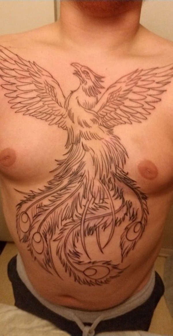 凤凰纹身 男生胸前生动的凤凰纹身图片