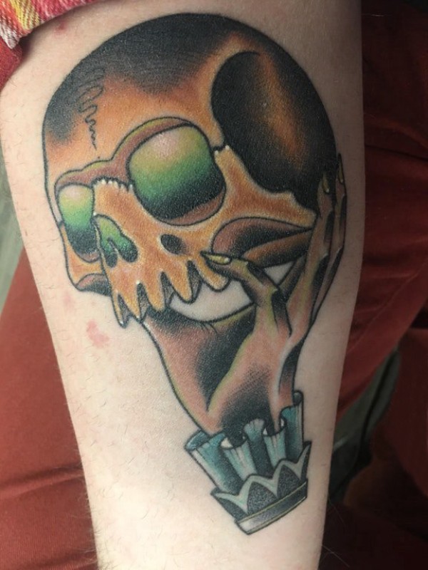 大腿纹身传统 女生大腿上手部和骷髅纹身图片