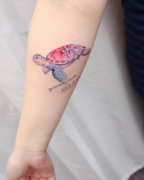 乌龟纹身图案 多款彩色渐变纹身素描乌龟纹身图案
