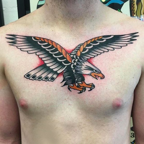 胸部道人加燕子图案半胛纹身