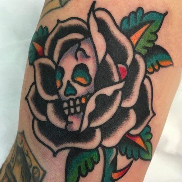 欧美玫瑰纹身 男生手臂上花朵纹身图片