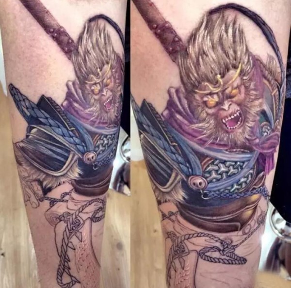 美猴王的怒吼斗战胜佛小腿纹身图案
