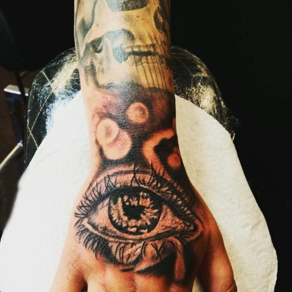 手背纹身 男生手背上黑色的眼睛纹身图片