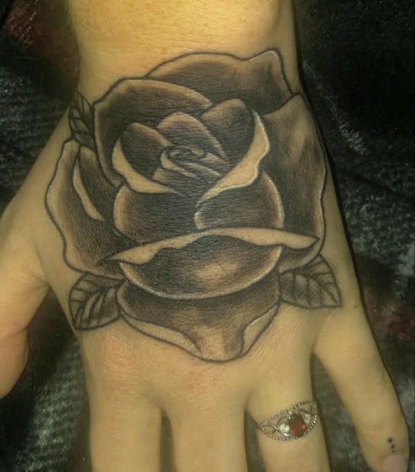 手背纹身 女生手背上黑色的玫瑰纹身图片