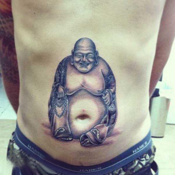弥勒佛纹身肚子 男生腹部黑色的弥勒佛纹身图片