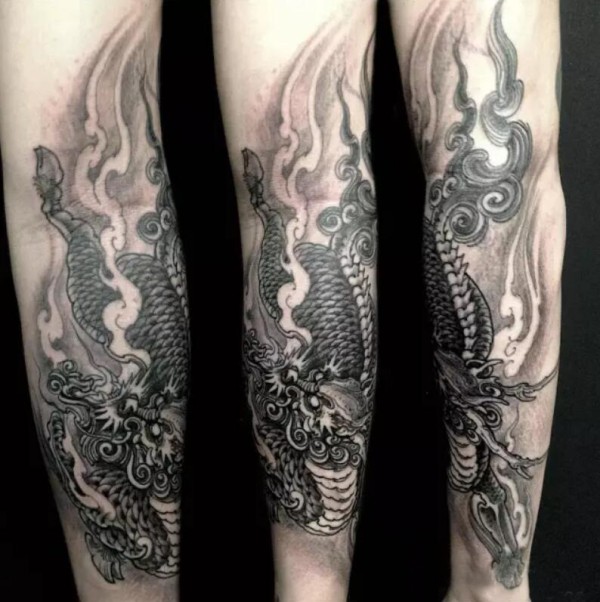 龙纹身手稿_一组老传统黑灰龙手稿纹身图案