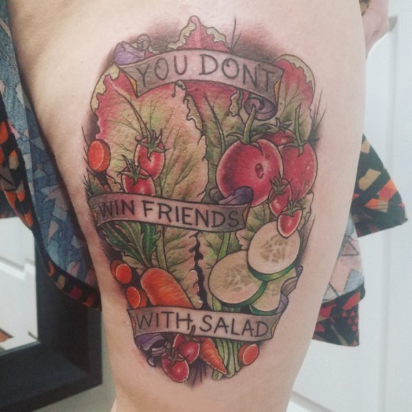 大腿纹身传统 女生大腿上英文和食物纹身图片