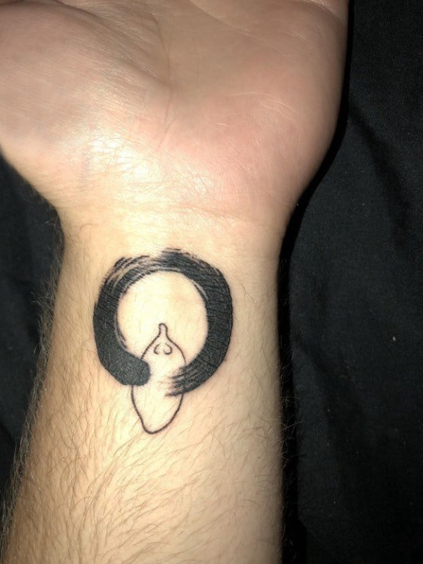 泼墨纹身 男生手腕上黑色的圆形纹身图片