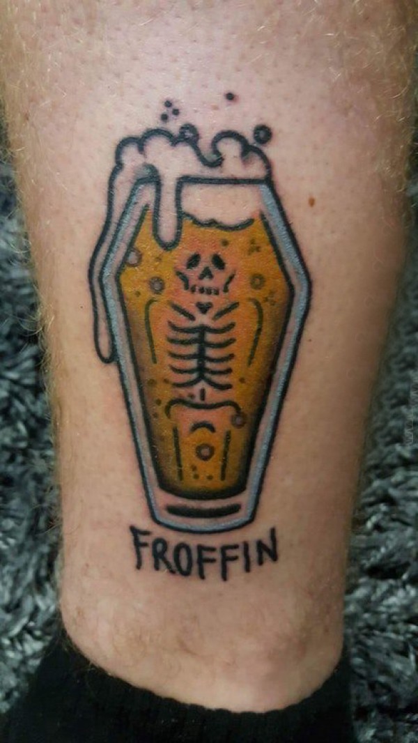 骷髅纹身 男生小腿上创意的彩绘骷髅纹身图片