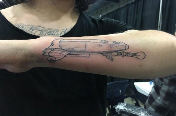 飞机纹身 男生手臂上黑色飞机纹身图片