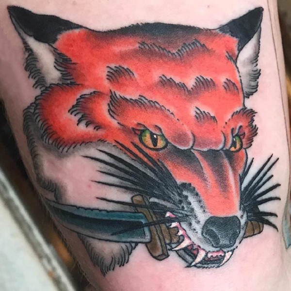 大腿纹身传统 女生大腿上匕首和狐狸纹身图片