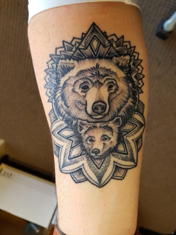 手臂纹身图片 男生手臂上梵花和熊纹身图片