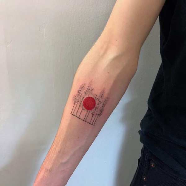 手臂纹身图片 男生手臂上大树和太阳纹身图片