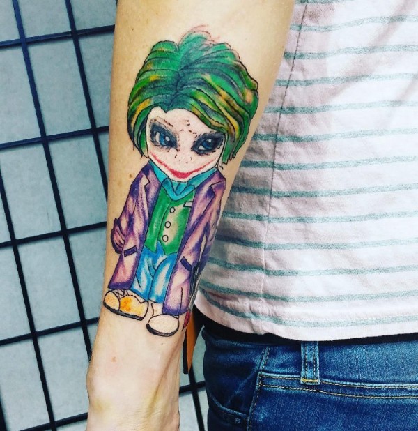手臂纹身图片 男生手臂上彩色的卡通小丑纹身图片