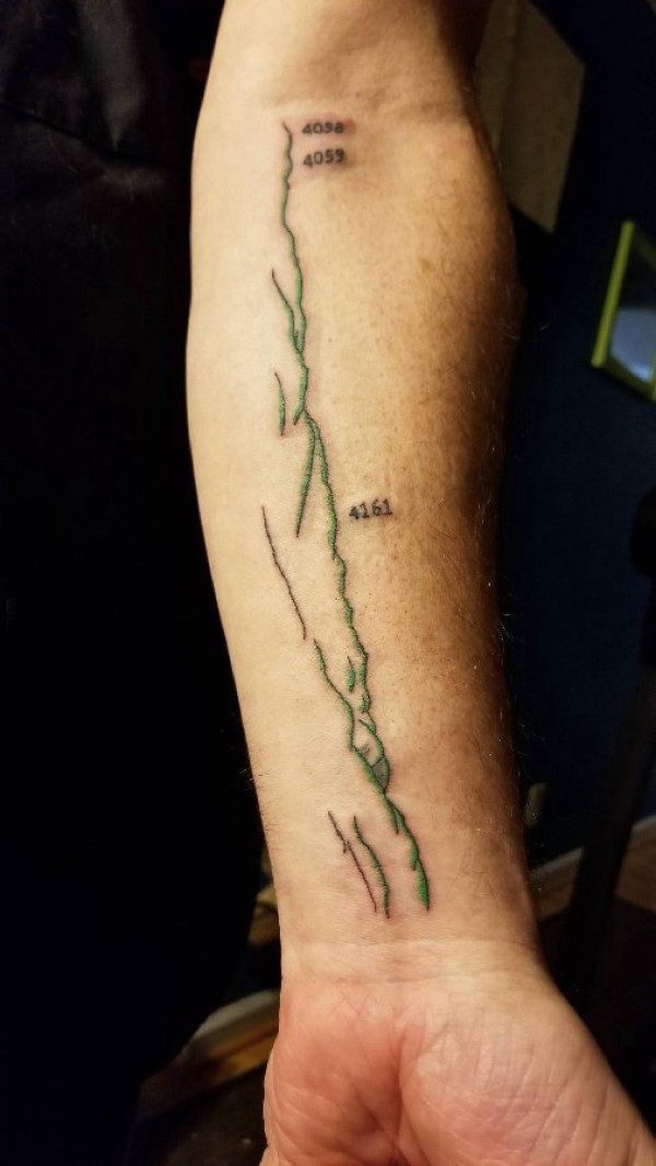 极简线条纹身 男生手臂上彩色的极简线条纹身图片