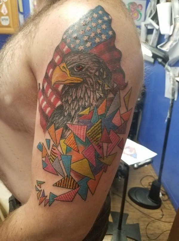 大臂纹身图片 男生大臂上三角形和老鹰纹身图片