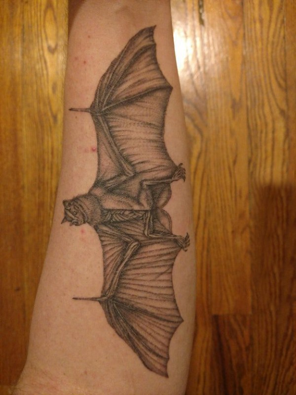 手臂纹身图片 男生手臂上黑色的蝙蝠纹身图片