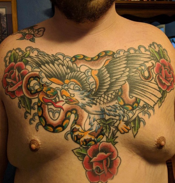 蛇和老鹰纹身 男生胸前创意的蛇和老鹰纹身图片