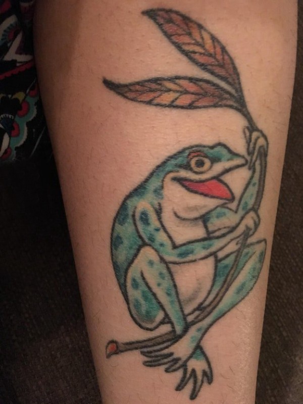 欧美小腿纹身 男生小腿上植物和青蛙纹身图片