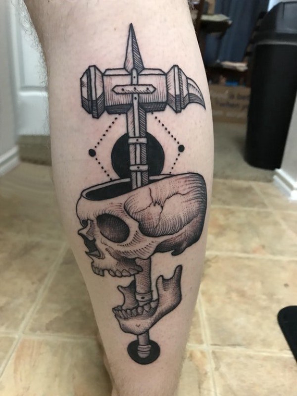 骷髅纹身 男生小腿上骷髅纹身图片
