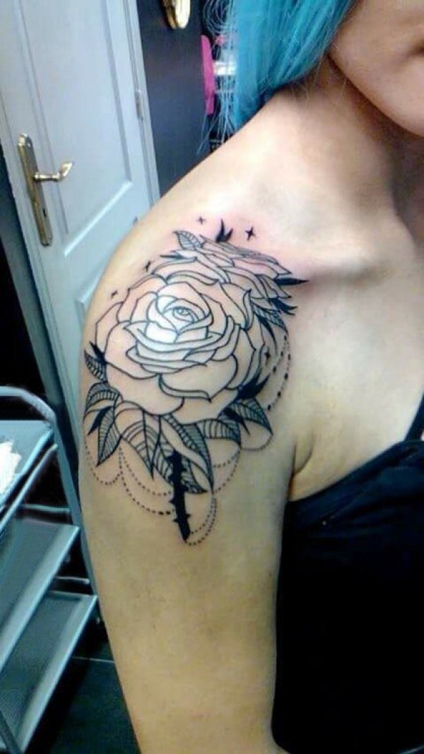 女性肩膀上多款漂亮的花朵纹身图案