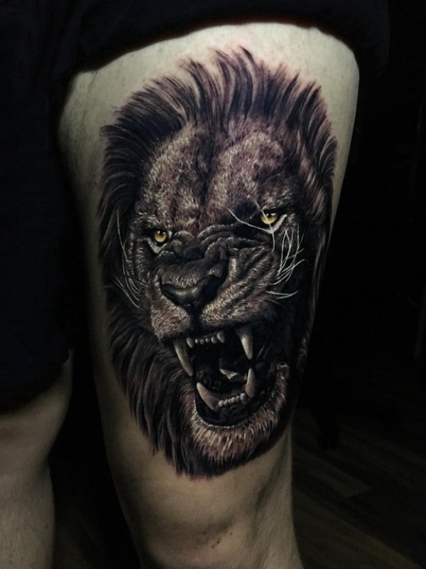 纹身狮子头手稿 黑灰纹身动物纹身狮子头手稿