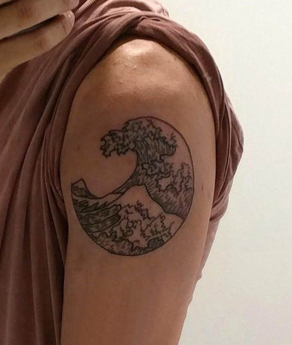 双大臂纹身 男生大臂上黑色的海浪纹身图片