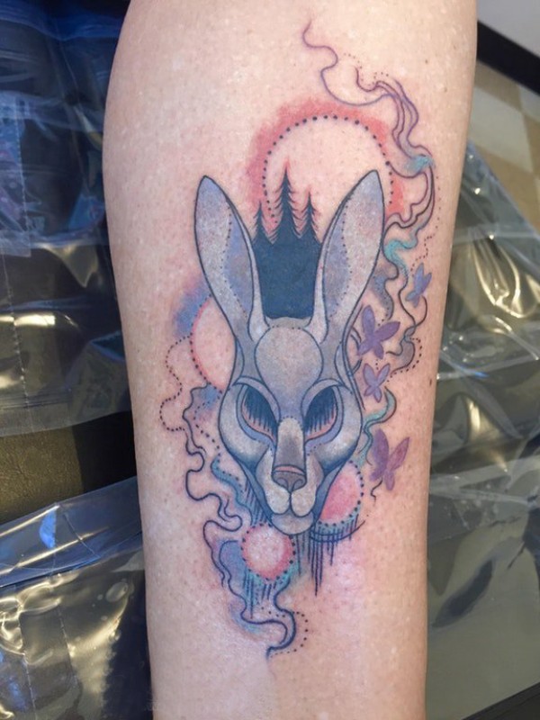 小动物纹身 女生手臂上彩色的兔子纹身图片