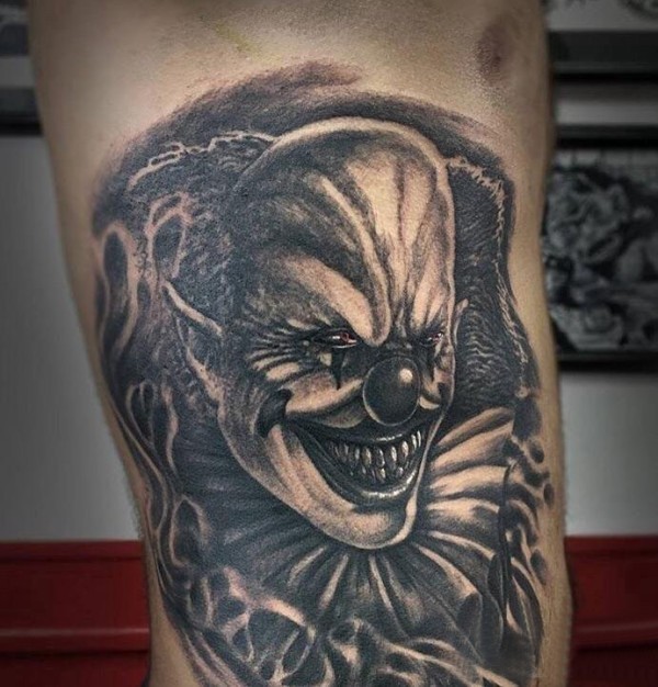 小丑纹身 男生大腿上恐怖的小丑纹身图片