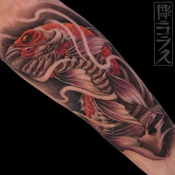 日本花腿纹身樱花纹身鲤鱼荷花粗线条纹身图片
